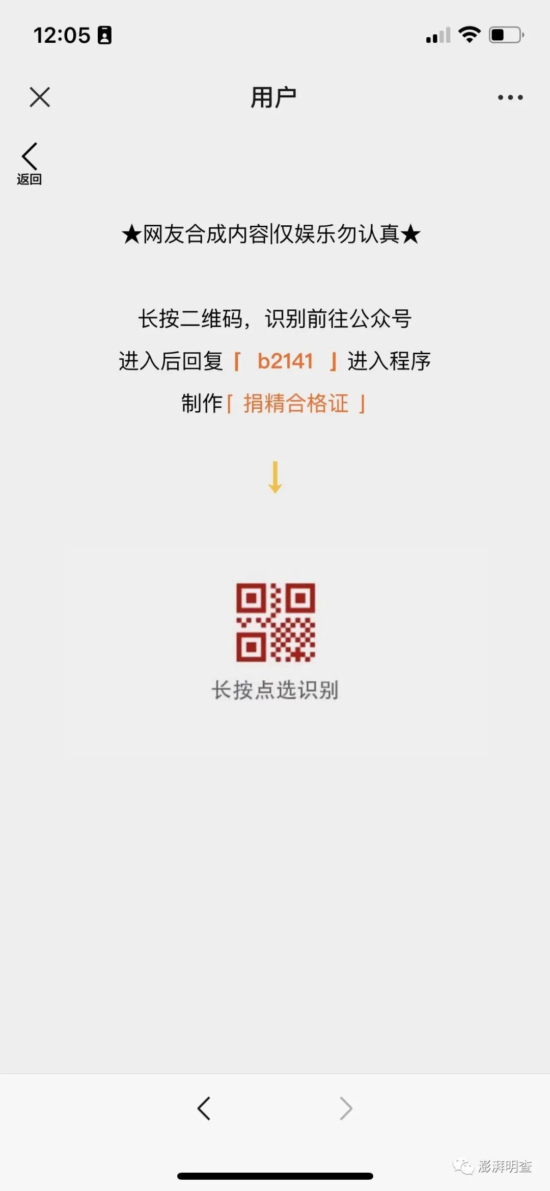 不过,扫描下方二维码显示,这一所谓的“捐精合格证”只是网友合成,带有恶搞性质。