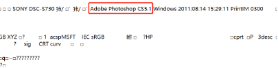 用记事本功能打开该图片后发现代码第一行显示“Adobe Photoshop CS5.1”,编辑于2011年8月14日。