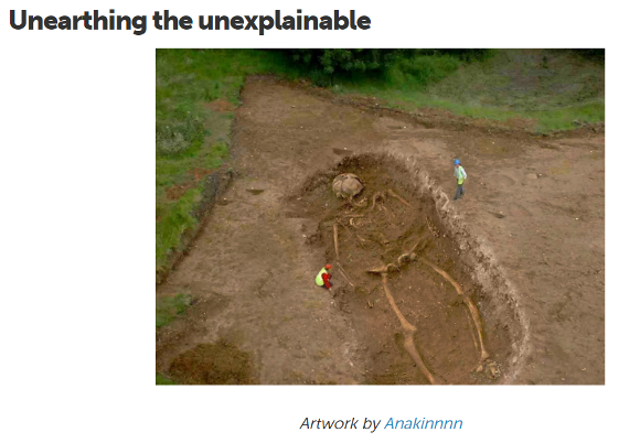 一篇发表于2016年题为“巨人骨骼似乎真实到不像个骗局”(Giant Skeletons Seem Too Real To Be A Hoax)的文章提到,数码照片编辑软件允许人们在进化的时间线中添加自己的创意元素——互联网中的一些“非凡的”人类遗骸是人为编辑处理过后的产物,其中就包括DesignCrowd(Worth1000.com)社区成员的作品。这篇文章还附上了一个名为“考古异常”(archaeological anomalies)的图片集,以及一些风格类似推文配图的更加光怪陆离的巨人骸骨图片,其中就包括其他广为流传的巨人族存在的“证据”。