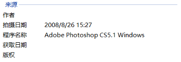 下载该图片,并查看“属性”,可以发现该图片“来源”一栏显示拍摄日期为2008年8月26日,程序名称为“Adobe Photoshop CS5.1 Windows”。