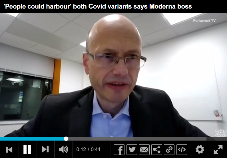 此说法可能指向的是本月早些时候莫德纳首席医疗官保罗·伯顿(Paul Burton)博士的言论。据《每日邮报》报道,在英国议会科学与技术委员会会议上,伯顿警告说,德尔塔和奥密克戎的交叉感染可能会导致两种毒株“交换基因”,从而催生一个新的超级变体。