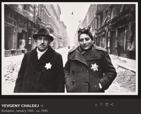 对图片进行反向搜索发现,德国法兰克福的施塔德尔博物馆(Städel Museum)收藏有这张照片。图说显示,这张照片于1945年拍摄于匈牙利首都布达佩斯,作者是叶夫根尼·卡尔德伊(Yevgeny Chaldej, Evgenii Khaldei)。
