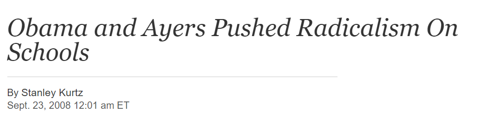 2008年2月2日,英国《每日邮报》刊登了一篇题为《黑肯尼迪:但是有人知道真正的巴拉克·奥巴马吗?》(The Black Kennedy: But does anyone know the real Barack Obama)的评论文章。文章作者彼得·希金斯(Peter Hitchens)指出,奥巴马的捐款清单显示,某位威廉·艾尔斯为奥巴马竞选伊利诺伊州参议员时出资200美元,这位艾尔斯很可能就是伊利诺伊大学的教授比尔·艾尔斯(注:比尔为威廉的昵称)。这一说法后来得到《纽约时报》等多家主流媒体的证实。