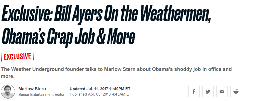 《野兽日报》报道标题:“独家:比尔·艾尔斯论地下气象员、奥巴马的垃圾工作以及其他”