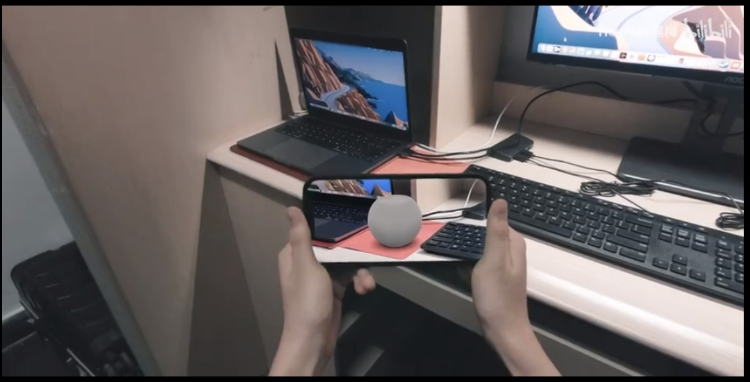 实时AR效果。截图来自Bilibili视频《苹果AR真实体验——用八个app带你见识增强现实》。