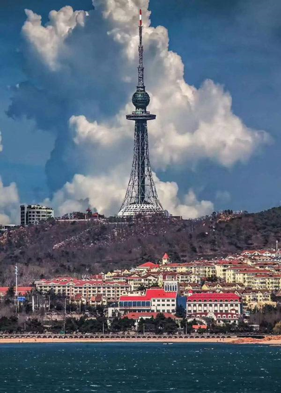 据中共青岛市委党史研究院(青岛市地方史志研究院)主办的青岛市情网介绍,青岛电视塔竣工于1995年2月,坐落于山东省青岛市市中心榉林公园内116米高的太平山顶。该塔塔高232米,总重1300吨。地面三层为塔冠,最大直径有56米。塔内部设施齐全,观光娱乐项目丰富。1995年12月,国务院发展研究中心评定青岛广播电视塔为“中华之最”,授予“中国第一钢塔”证书,并收入“中华荣誉大典”(1949~1995)。