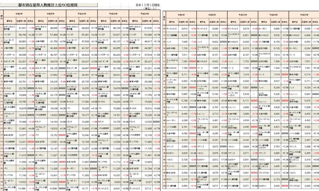 50个日本公民聚居的海外都市圈