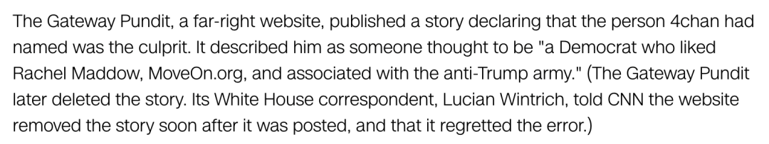 在谷歌上搜索关键词“Gateway Pundit”后发现,该网站曾被包括CNN、《纽约时报》等多家主流新闻媒体定性为“极右翼网站”。而文章的作者霍夫特,正是该网站的创始人和主编。