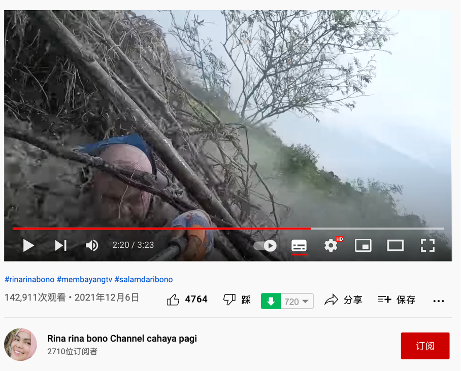 该视频以印尼语发布,去年12月7日由一名叫“想象电视”(Membayang TV)的博主上传。视频下方的描述栏显示,该视频拍摄于12月6日,由“rina rina bono”“onex tm”和“想象电视”合作完成。