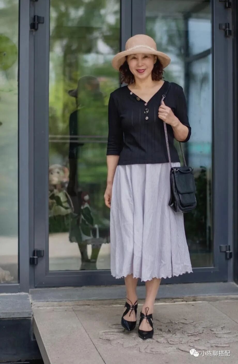五十岁往后,很多女人都会面临身材发福的问题了,因此如何做到穿衣舒适还显瘦就是考验女人衣品的首要难题,而jenny奶奶给出的答案是善用服装的线条。