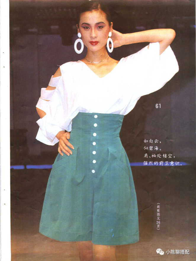除了长相,她当时的时尚资源也很不错。以前八九十年代的女装打版书大多都是欧美、日韩的设计版型,很难见到国人自己设计并出书的人,里面的模特就是叶继红。