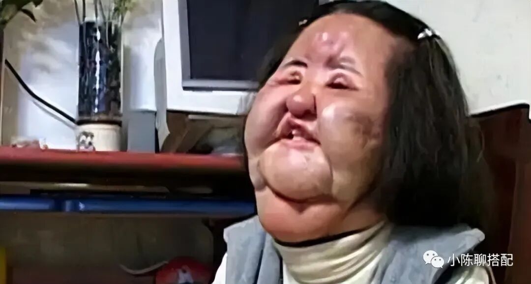从照片可以看出,整容前的她长相并不差,眉清目秀,可以说颜值上并不输港星。但整容后的脸,脸部扭曲、肿得像是一颗巨型肿瘤,整个人可以说是已经面目全非。