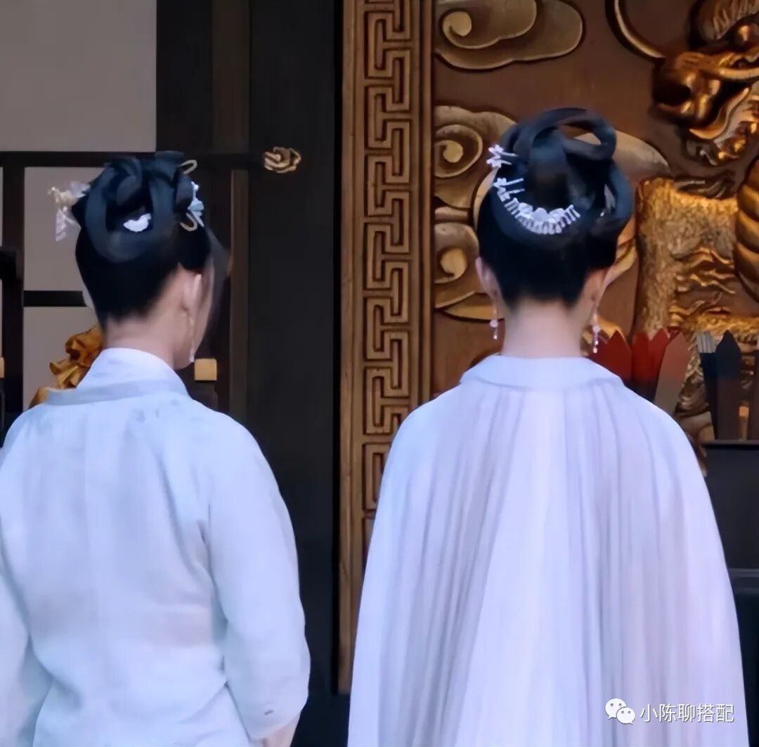 尤其是在古装的打扮中,几乎都是以盘发以及点缀金尊玉贵的发钗为主,这也就使得头部的量感看起来会比较重。