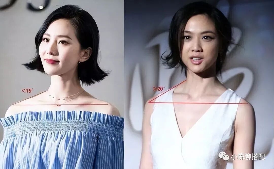 在讨论溜肩与直角肩的各自的审美之前,让我们先看一下何为直角肩,何为溜肩?