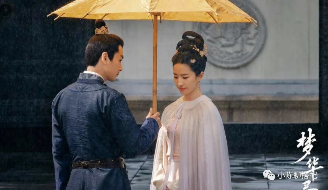 除此之外,在古装剧中经常出现的拽地长斗篷披在溜肩之上,也比直角肩来得更精致婉约,光是看刘亦菲的一个背影图就已经能想象到转身之后的“回眸一笑百媚生,六宫粉黛无颜色”的盛世美颜。