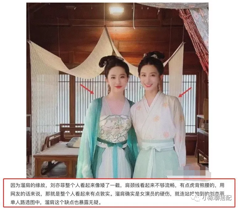 尤其是最近电视剧《梦华录》的火热观影之下,除了对刘亦菲的神仙颜值的各种花式夸赞以外,最多的就是对她溜肩的吐槽。▼