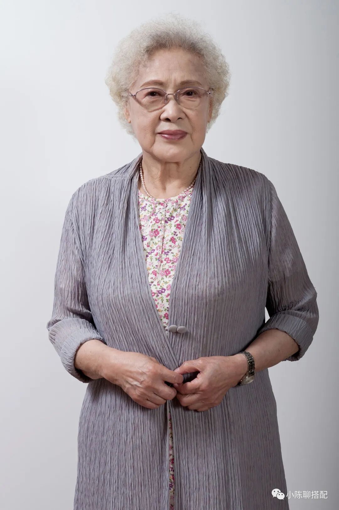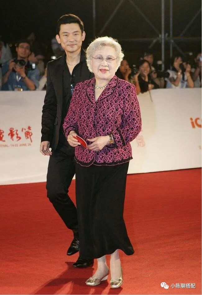 暮年的秦怡身材虽有发福,但在打扮上同样端庄而文艺,尤其喜欢碎花衫,搭配纯色肌理感面料的薄外套,繁简结合,舒适而优雅。