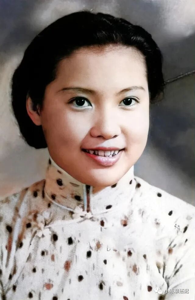 少女时期的她,一身浅色碎花旗袍,活像一株等待盛开的百合,典雅中透着一股稚气。