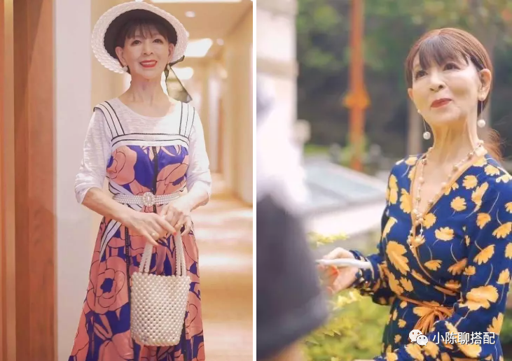 很多年迈的奶奶几乎很少穿气质型的衣服,更多的是穿老年装,像中规中矩的唐装,花哨又呆板,或者是颜色偏浅偏暗的服饰,而汪碧云奶奶则相反,她更偏好前者,尤其是裙装,以高级简约为主。▼