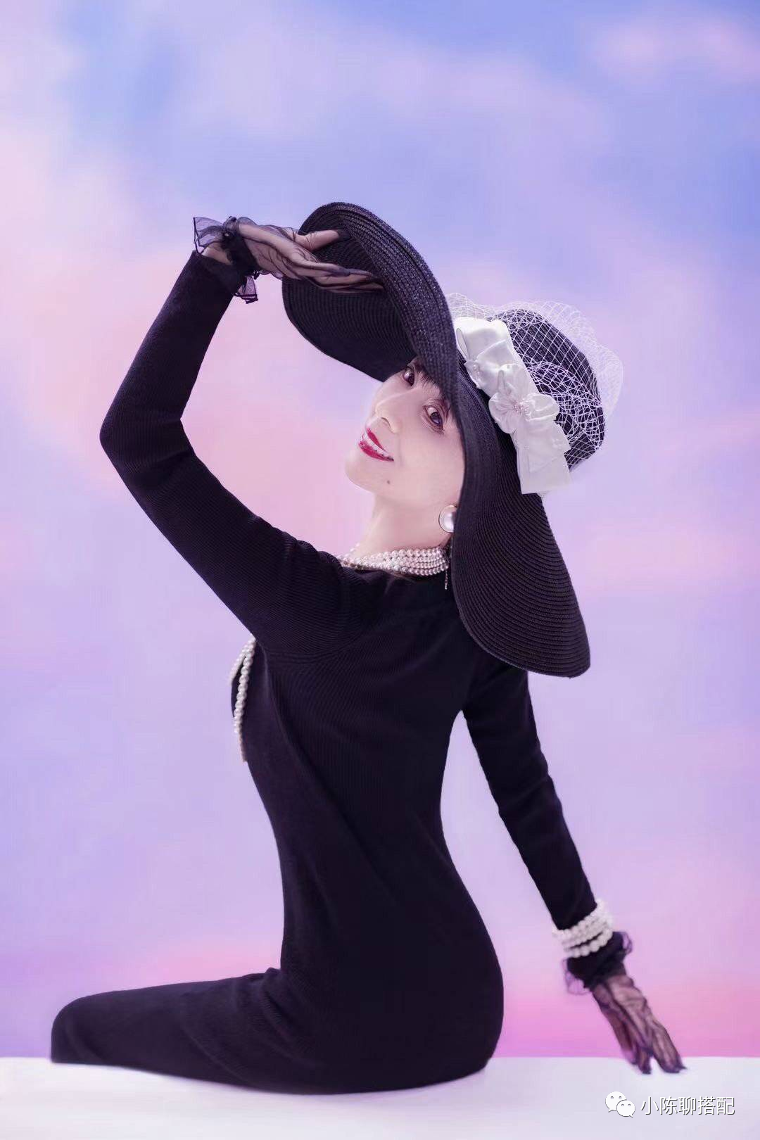 一条黑色的长裙,丝绒质地,剪裁上巧妙地勾勒出身体线条,显瘦又拉长了身形,再搭配同色系的宽檐帽和色彩对比鲜明的珍珠配饰,得体又优雅,复古也显气质,可见,她对裙子的诠释和品味甚至超过的很多小辈。▼