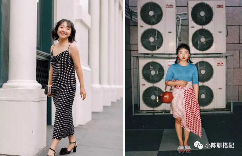 看下图中,辣目洋子一席露出锁骨和肩部线条的吊带波点连衣裙,黑色显瘦效果非常明显,再加上仅仅漏出了对比下来比较纤细的地方,因此看起来清爽了不少;