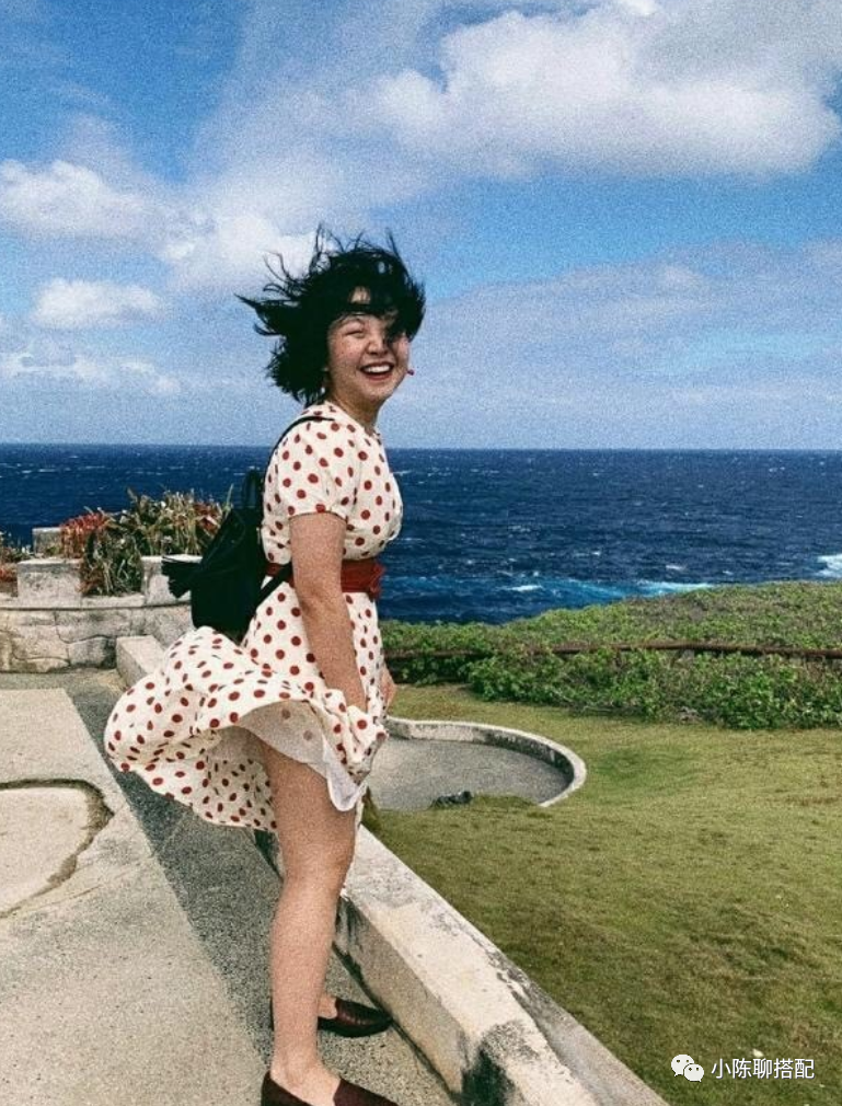 而辣目洋子的穿搭很好地规避了这两点,服装色彩亮眼但一点不扎眼,视觉观感上非常的舒适耐看,这在一定程度上为自己微胖的身材减缓了一些油腻感,显得清新轻盈了不少。