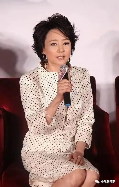 比如说张瑜,如今65岁的她虽然已至花甲之年,但相比年轻时候的青春灵动,现在的她却更有风韵。一头利落的短发、一袭黑白波点套装裙,简约大方且优雅得体,让人不禁想到那句“岁月果真不败美人”。