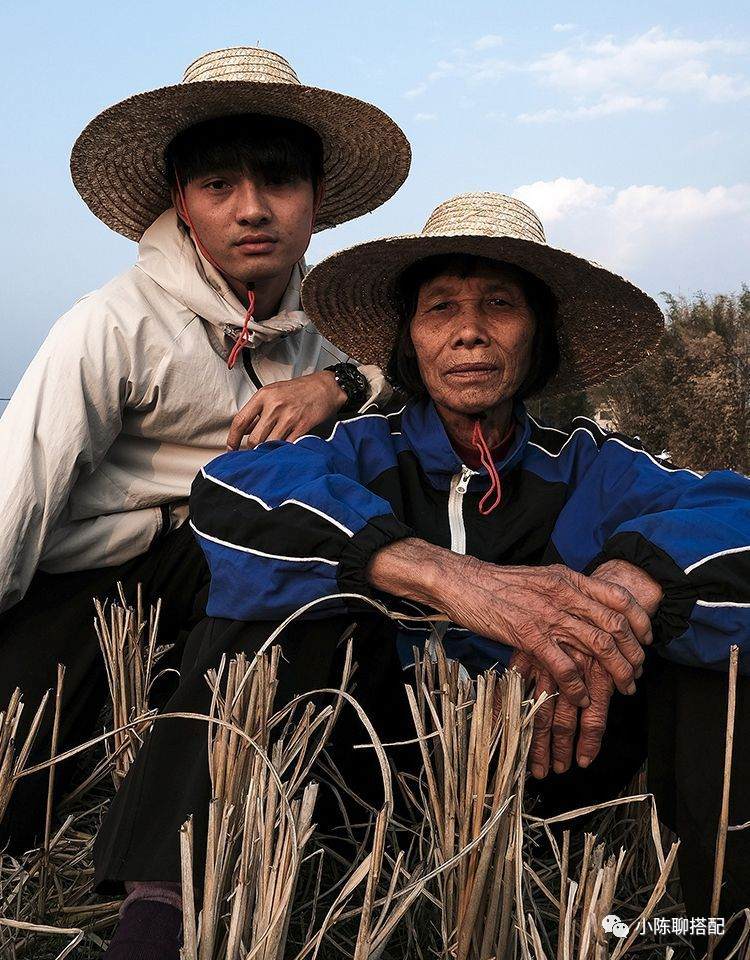 常年劳作带来的是瘦而有力量的身形,饱经风霜的皮肤变成画面中故事感的来源,再加上简洁而和谐的服饰,让奶奶看起来潇洒自如,气场逼人。