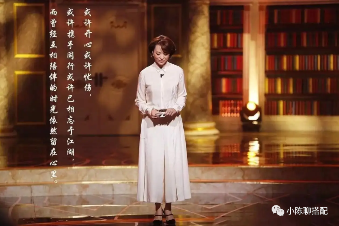 裙装选择对了,也不代表你100%就能穿出气质,你可以在搭配时候进行适当技巧帮助,哪怕是极简的穿搭风格,也可以用到搭配技巧。比如董卿的穿搭里,她的许多裙装搭配,就有丝巾、腰带、配饰来点缀。