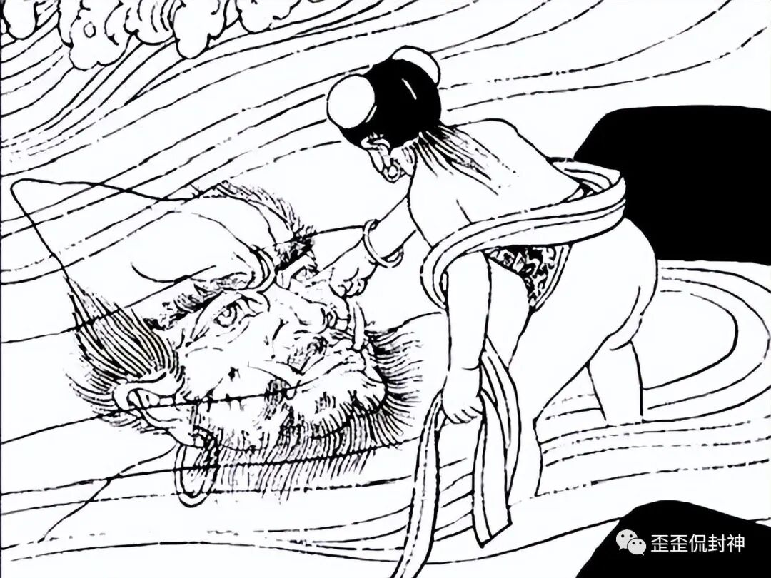 这是五月的炎热季节,哪吒受不了天气燥热,禀过殷夫人出关闲玩,就到了九湾河,正觉炎热的哪吒一看到河水,顿时大喜,当即跳入水中,哼唱着玩儿起水来了。