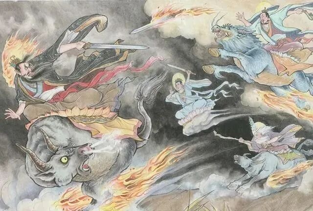 于是杨戬就变化成余化的模样,从余元手里骗来解药,并还打死了余化,这一出,双方结下了仇怨,于是余元离开蓬莱,到汜水关来了,然后,就被惧留孙用捆仙绳给绑了。