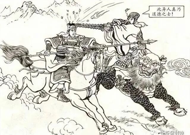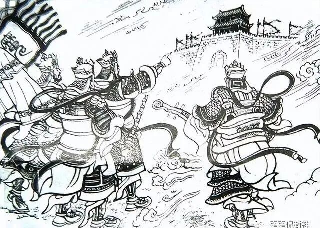 袁洪和杨戬的头一回交手,在杨戬祭哮天犬出来,袁洪就化一道白光,脱身回营而仓促结束,从对战结果来看,似乎是杨戬略胜一筹。