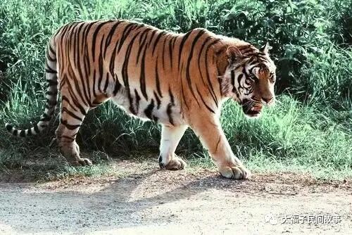 新郎官大喝一声继续往前行进,然而走了没两步,前方忽然金光大闪,几人定睛一看,面前竟不知何时走出一只猛虎,虎身之上身披红色大袍,在月夜之下显得威风凛凛。