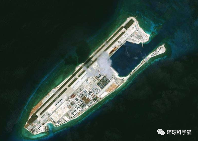 永暑岛之前是我们称之为的永暑礁,永暑礁是南沙群岛里的大型环礁,面积高达108平方公里,超过南沙六群礁里某些群礁。而在2014年到2015年,我国完成了永暑礁西南陆域上的吹沙填海作业,实现了永陆面积达2.8平方公里,这里说了一个“永陆”的字眼,很多人应该也就明白,意思就是这一块区域不太可能受到海洋变化的影响,按照公开的解释,那就是——即全面不会被潮水淹没的陆地。