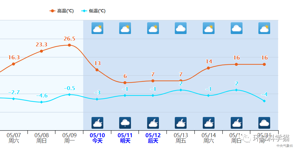 而北方地区的降温就更强了,例如:黑龙江漠河,将从最高26.5度,直接大降到最高6度,大降20度以上,这完全是“断崖式”降温,而最低也是在0度以下,这就是冷空气的影响。