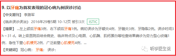 其实患者一直有胸闷不舒服,只不过牙痛症状掩盖了胸口的不舒服。不是所有心梗患者都会有典型的胸闷、胸痛表现,有些人是以牙痛为主要表现的,虽然少见,但是有。一旦误诊,患者可能一命呜呼。这名急诊科医生真是走了狗屎运了。