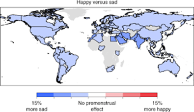 研究表明,在全世界各个国家和地区,月经周期的影响总体上是一致的。