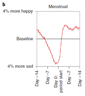 不是只有中国女人才情绪不稳定。研究人员分析了来自109个国家330万女性的近2.41亿次观测数据,利用女性健康移动应用APP追踪了15个维度的情绪、行为和生命体征。