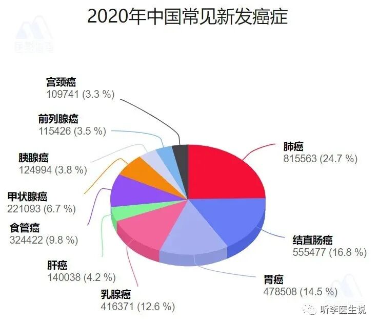 大家看一看2020年我们国家最常见的十种恶性肿瘤分别是什么: