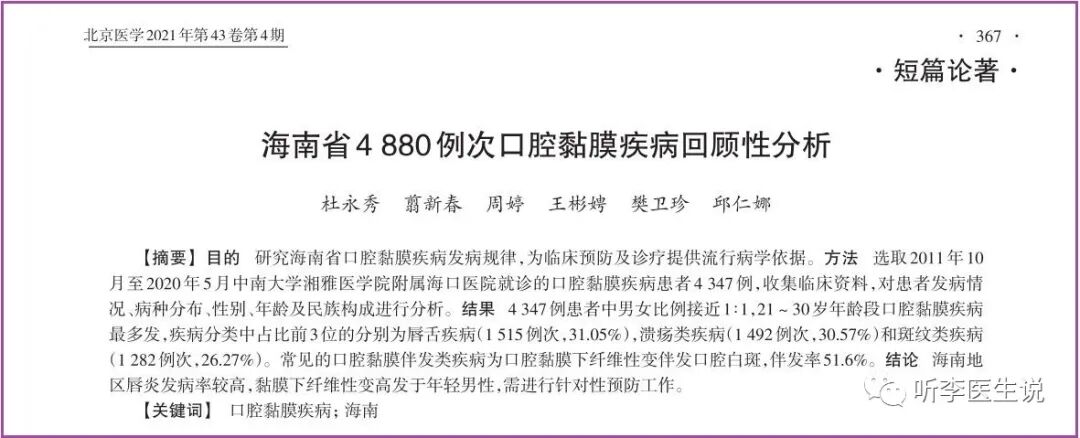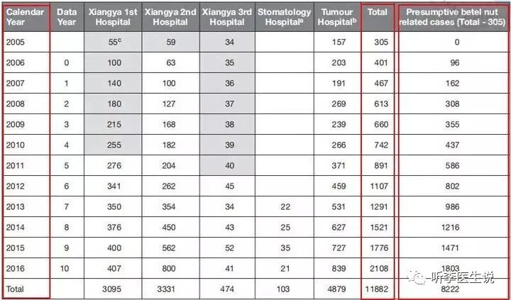 2017年,湘雅医院继续发表了一篇高质量的研究报告,在研究中,作者收集了长沙五所医院从2006~2016 年因口腔癌入院就诊的患者。