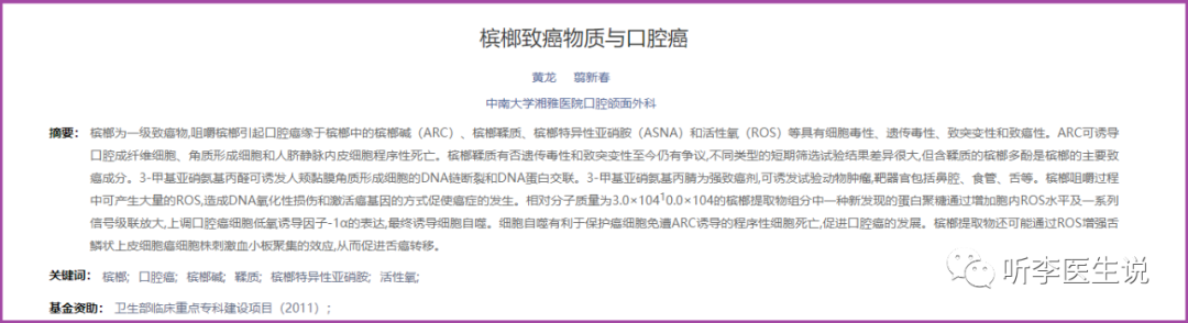 湖南省医学会口腔医学分会的专家们一直都有研究槟榔和口腔癌的关系,尤其是上文我们提到的翦新春教授,相关的研究很多,2011年还在重点医学杂志发表了他们的研究《槟榔致癌物质与口腔癌》,算是国内最权威的一个研究了,槟榔致口腔癌,从此盖棺定论。