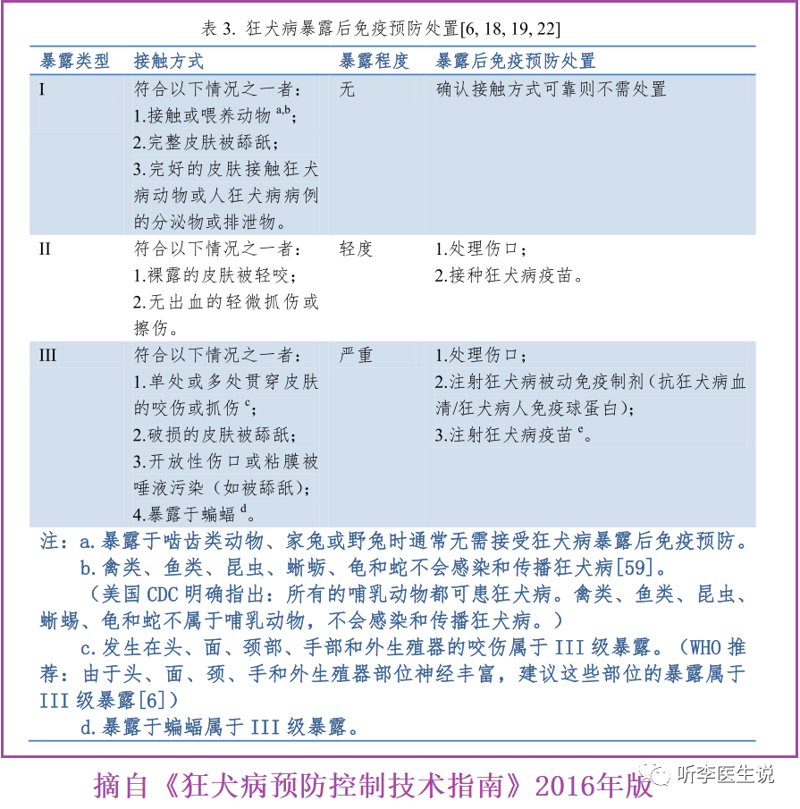 按照暴露性质和严重程度将狂犬病暴露分为三级: