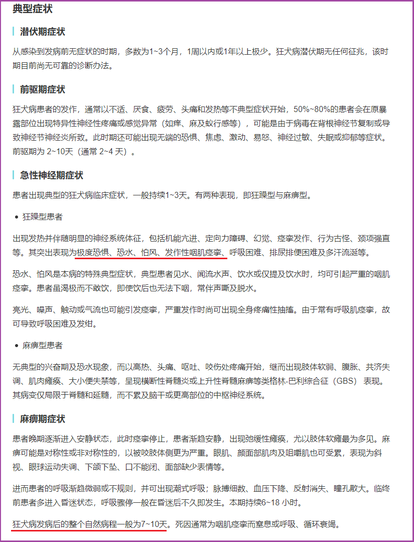 我们国家的医学教材《传染病学》(第八版)明确表示:狂犬病是所有传染病中最凶险的病毒性疾病,一旦发病,病死率达100%。