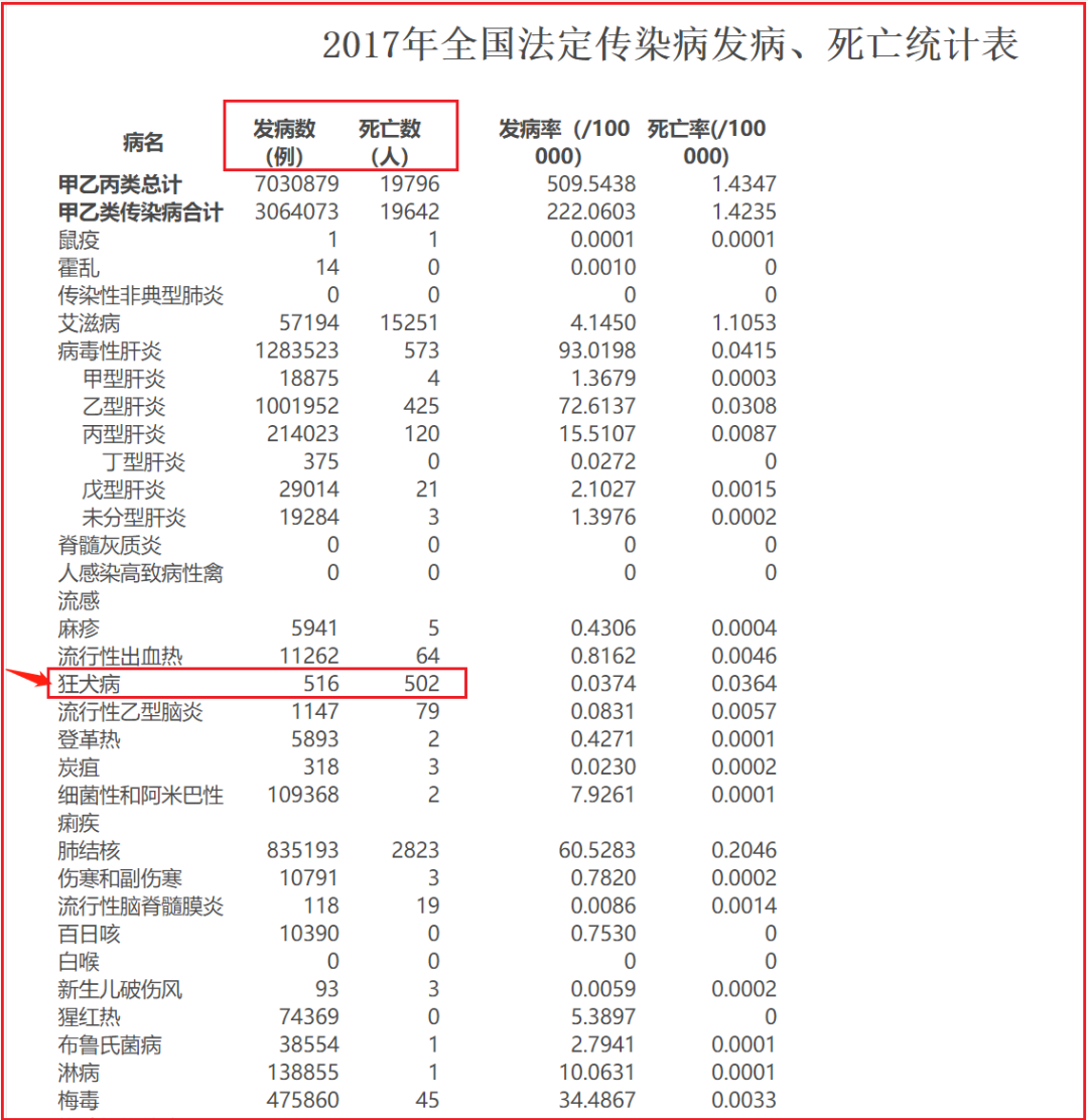 上述是2017年的数据,整个中国地区上报了516例狂犬病,死亡502例。不是说死亡率100%么?不应该是516例死亡么?别急。这个数据肯定不能如实反映情况的,首先,一定有部分狂犬病患者没有去医院就诊,或者没有明确诊断就让其回家了,即便这部分患者是狂犬病,也可能没有登记上报,所以真实病例应该不止516例。