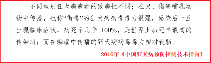 而在2016年我们国家推出的《狂犬病预防控制技术指南》里提到:狂犬病病毒感染后一旦出现临床症状,病死率几乎100%,是世界上病死率最高的传染病。