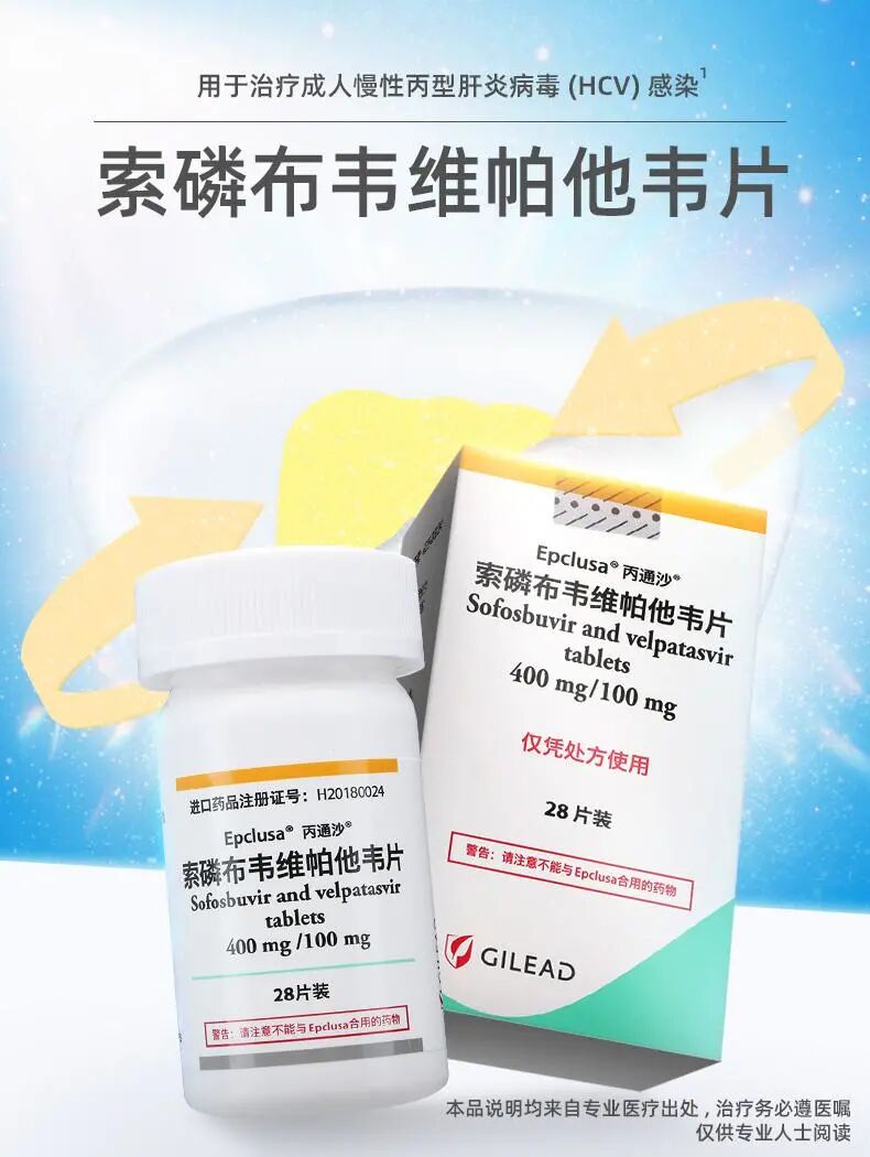 过了2年,2016年,吉利德公司又研发生产了第三代索非布韦,这也是一个复方制剂,一片药含有400mg索非布韦,100mg维帕他韦,这两个药都是强力的抗病毒药物,现在合在一起用,效果更好,而且对所有丙肝类型都能有效,效果达98%以上。史称吉三代。
