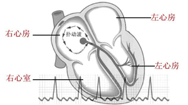 这么解释吧,心脏有心房、心室,而且心脏里面是有电活动的,心脏能够跳动就是因为电传导支配了心脏(心房电活动下传给心室),这次是你的心房出了问题,心房里面的电路发生了障碍,心房的电活动就不容易下传到心室,导致很多电活动在心房里头转圈圈,不停地刺激心房,导致心房跳的很快很快,可能有300次/分的频率,其中只有一部分(比如150次/分)能下传到心室,比较规律,好像小鸟的翅膀扑动一样,就称之为心房扑动,简称房扑。心内科医生这么解释。