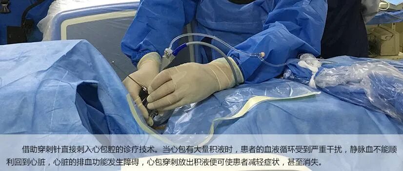 手术医生当然知道这点,所以他一边流汗,一边紧急准备心包穿刺术。患者发生了心包压塞,心脏被紧紧箍住,动弹不得,只有迅速把心包里面的血液放出来,解除心包压塞,才有一线生机。