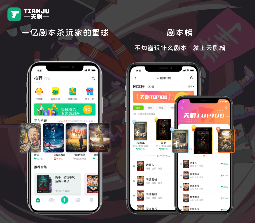 针对这两个痛点,王贺轮打造了剧本杀专属玩家的社区“天剧”。针对此前提到的第一个痛点,“天剧”解决方案是“剧本杀种草社区”,玩家可以在这里看到每部剧本的种草值/排名,以及其他玩家对它的评价。“每一部剧本的种草值都是在玩家玩过后选择推荐/不推荐的基础上,再累计加权平均的算法,计算出一个很直观的种草值,简单来理解就是:推荐的人越多,种草值就会越高,不推荐的人越多,种草值就会越低“,他想要通过这种评分排行的形式来直观的解决玩家玩本的痛点——避免踩雷,同时商家可以通过种草值和热度等直观的判断哪些剧本更值得购买。
