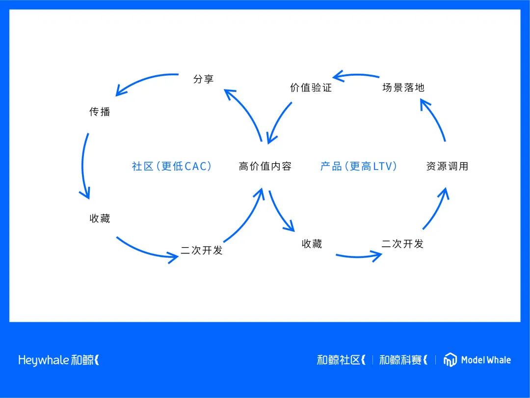 对于和鲸来说,产品迭代飞轮是产品体系和用户反馈的良性循环,资源壁垒飞轮是头部的企业客户和高潜力的个人用户。这是在迭代数据能力、分享开源成果、跑通应用闭环的过程中,形成的一种难以替代、持续演化的共生关系。